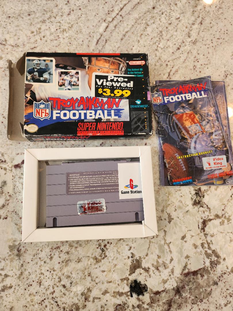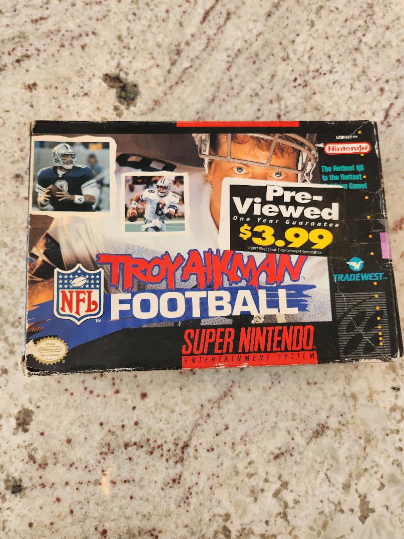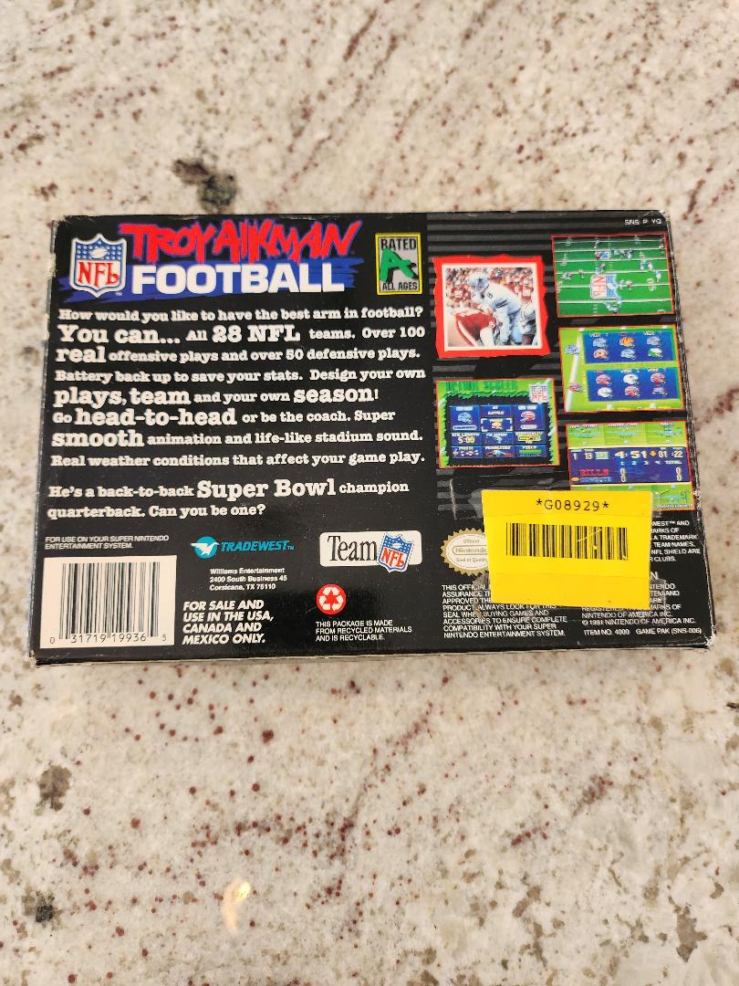 Aunque Troy Aikman es el único jugador real mencionado por su nombre en Troy Aikman<br>Fútbol americano de la NFL, cada uno de los 28 equipos de la NFL en este juego ha sido clasificado según<br>posición, según las estadísticas de la temporada '93-'94 . Puedes jugar a favor o en contra de cualquiera de los<br>equipos en el modo Pretemporada, el modo Temporada '93-'94 o el modo Temporada personalizada,<br>que te permite diseñar tu propia temporada o recrear una temporada a partir de el pasado de la NFL.<br>Independientemente del modo que decidas jugar, hay seis superficies de campo para elegir:<br>césped, barro, tierra, nieve, lluvia y césped artificial. Una batería interna en el cartucho te permite<br>guardar estadísticas de carrera de pretemporada o de temporada y regresar a cualquier temporada en curso después de apagar<br>tu SNES. <br><br>Si solo quiere entrenar, puede ordenar todas las jugadas y dejar que la computadora las ejecute.<br>Otras opciones y características incluyen: cuatro cuartos de duración diferentes, penalizaciones activadas o<br>desactivadas, un informe previo al juego, recepciones limpias, cinco técnicas de carrera diferentes, toques atrás,<br>audibles, play-offs (incluido el Super Bowl), repetición instantánea, tiempos muertos y múltiples<br>jugadas ofensivas y defensivas.
