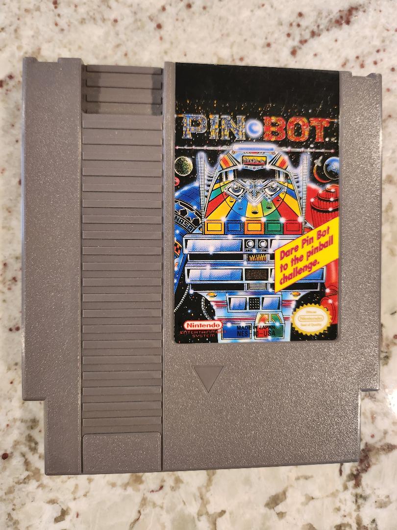 Pin-Bot is a conversion of the arcade pinball game by Williams Electronics. The game is played with a split screen; the bottom half of the screen remains on your flippers, while the top half scrolls to follow the ball(s) on the table. In addition to recreating the pinball game's table, lights, and sounds several video game elements have been added, such as monsters that like to eat pinballs. Up to four players can compete against Pin-Bot!