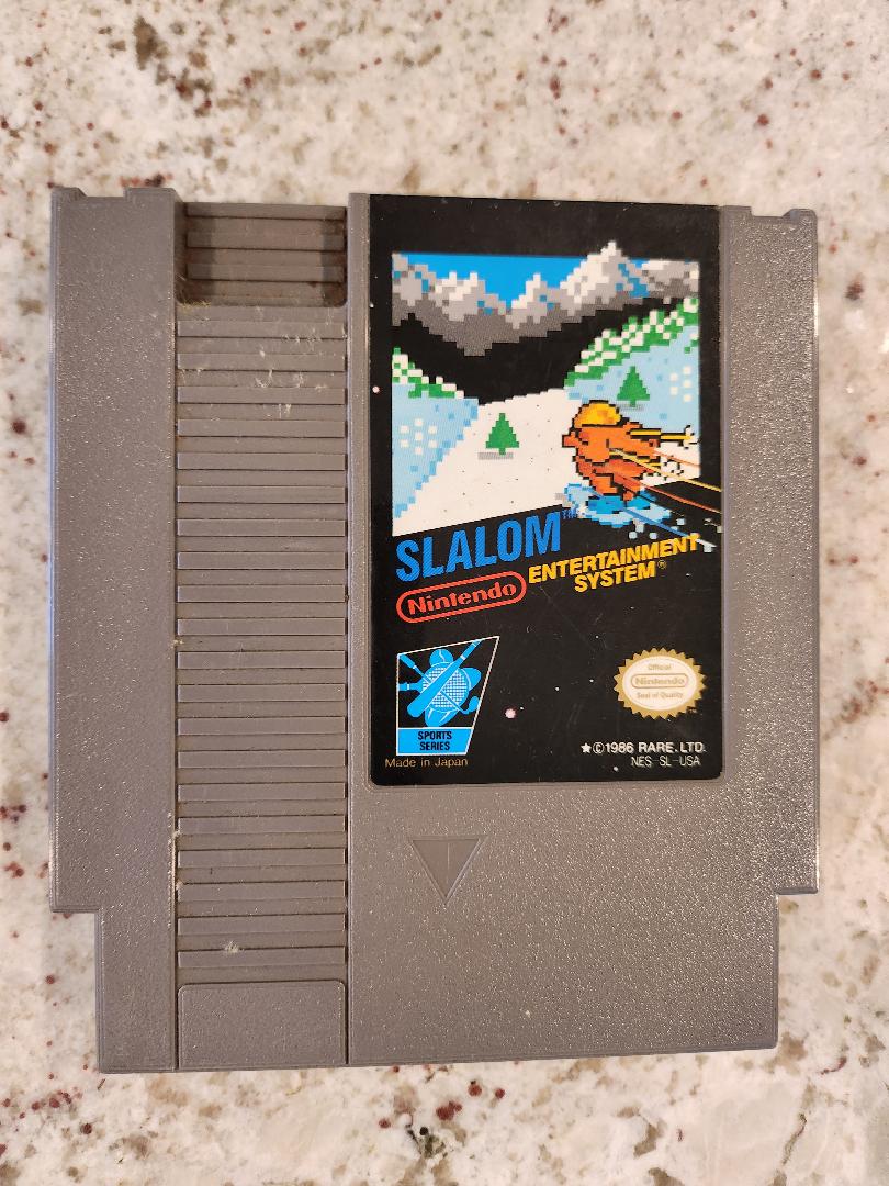 Take the role of an expert skier in Slalom. As you speed down each mountain skiing at incredible speed, you'll have to avoid several obstacles. These include trees, sledders, other skiers, and even snowmen. Meanwhile, you must ski around the flags properly and do so as quickly as possible. Catch some air on a mogul and perform some exhilarating freestyle moves. Choose from three difficulty levels, each with a different hill (Snowy Hill, Steep Peak, and Mt. Nasty). In all, there are 24 runs and 21 high-score records for you to beat. So hit the slopes as you sit on the couch with Slalom. Skiing has never been so convenient.